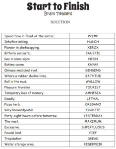 Here are the answers to Brain Practice, February, 2020