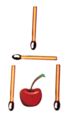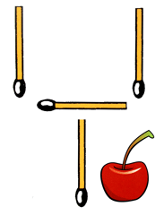 Move the horizontal match across so that the top right match points down at the middle of it. Take the top left match diagonally down to the other side of the cherry. Easy when you know how!