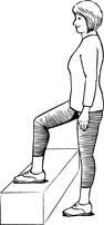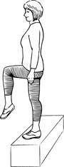 - When this is no problem, progress to stepping up and standing upright with both feet on the step before stepping back to where you started. Repeat the full step-up starting with the opposite leg this time.