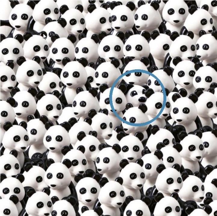 Somewhere among the pandas is a Lego dog – can you find him?