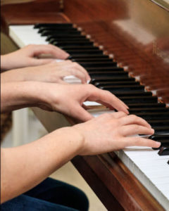 One pianist played the melody of a piece of music in the MRI scanner, while their partner played the bass line on an ordinary piano outside the scanner room.