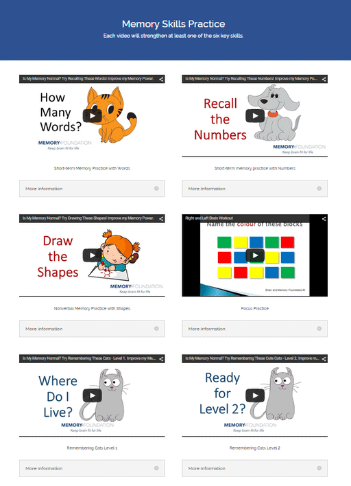 At Brainfit.World (formerly The Memory Foundation), we’ve created 24 free memory game videos on YouTube designed to challenge and improve your brain power.